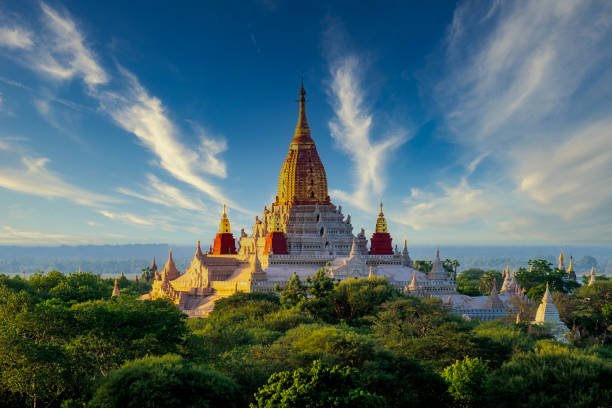 Shwezigon Pagoda was one of the earliest temples in Bagan to feature the classic bell-shaped stupa, which became a model for many later temples in Myanmar and beyond. The pagoda is richly gilded with gold leaf, and its walls are decorated with detailed carvings and statues that depict scenes from Buddhist teachings as well as historical and mythical stories. These artworks reflect the skill of artisans during King Anawrahta’s reign and his successors.